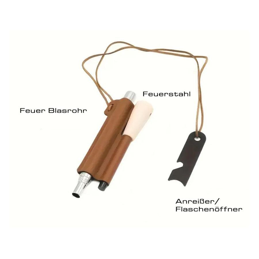 Bestehend aus einem Feuerstahl für bis zu 8.000 Zündungen, dem passenden Anreißer zum Funken erzeugen und dem Game Changer schlecht hin beim Feuer machen, das Teleskop Feuer Blasrohr. Hiermit bekommst Du ganz dosiert und punktuell, so wie Du es gerade benötigst, Luft genau dahin, wo Du sie brauchst und das ohne Dich zu verbennen oder ähnliches.