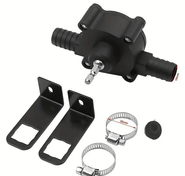 Du benötigst nur zwei handelsübliche Schlauchstücke und einen Akkuschrauber bzw. eine Bohrmaschine. Die Pumpe einfach, wie einen Bit, in die Maschine einspannen, den Zu- und den Ablaufschlauch montieren und schön ist die Pumpe einsatzbereit. Sie ist der perfekte Begleiter für kleinere Pump-Arbeiten. Sie ist nicht dafür geeignet einen Pool oder ähnliches leer zu pumpen.
